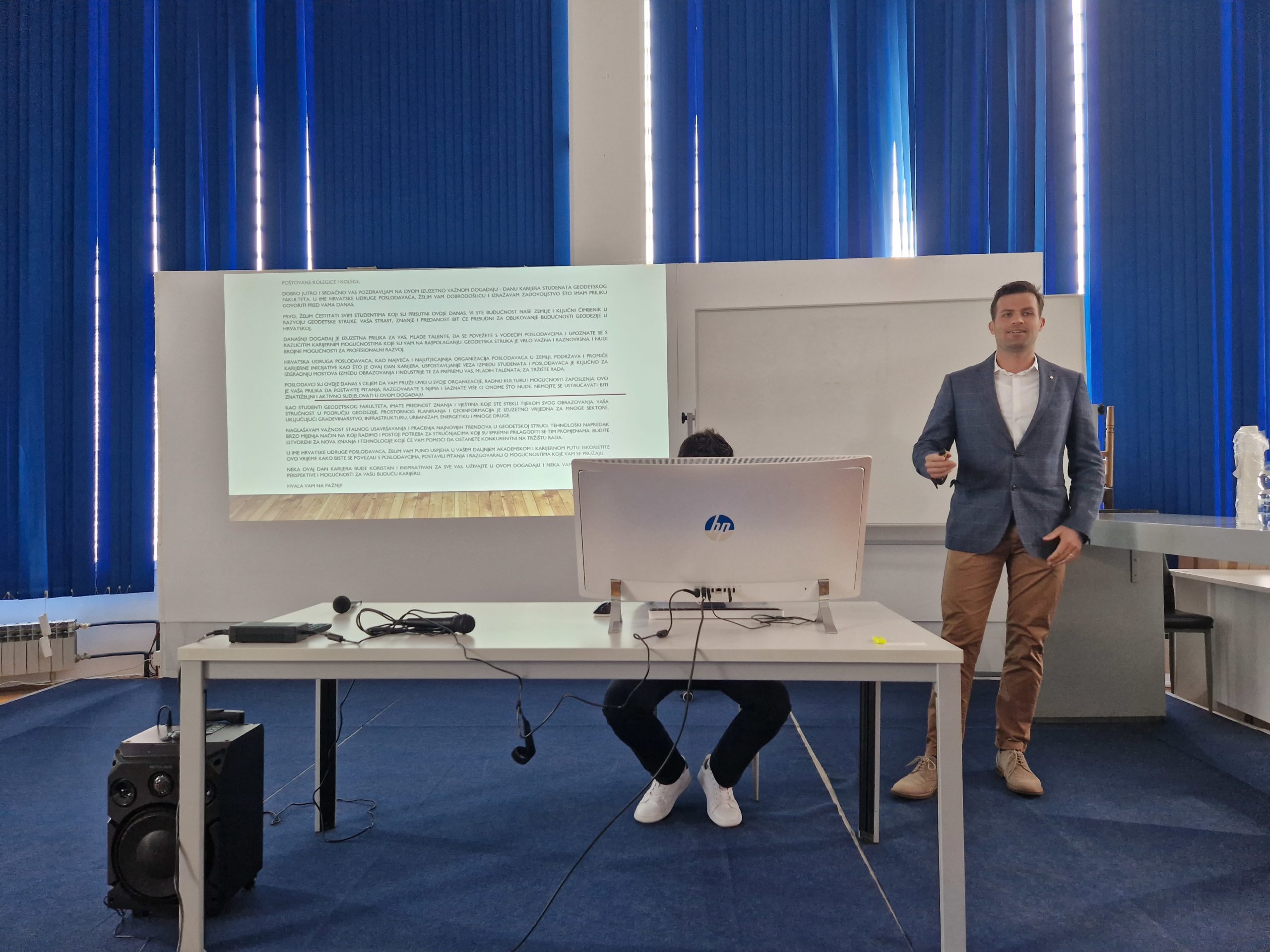 Prvog dana 14 tvrtki iz područja geodezije i geoinformatike na štandovima i putem prezentacija upoznalo je prisutne studente s poslovima kojima se bave, kako funkcioniraju, kakav profil djelatnika traže te što se od njih očekuje. Studentima su se predstavili: Državna geodetska uprava, GEODATA Projekt d.o.o., Geoprojekt d.d. Opatija, IGEA d.o.o. , Ericsson Nikola Tesla d.d., Geodetski zavod Rijeka d.o.o. , Hidrocibalae , Prehnit d.o.o. , Hrvatski hidrografski institut, Zavod za fotogrametriju d.d. , Geofocus d.o.o., List Labs, Usus Fructus d.o.o. i Tehnomehanik d.o.o. Također su održana dva zanimljiva karijerna predavanja: „Životopis i razgovor s poslodavcem“ i „Pristup i članstvo u Hrvatskoj komori ovlaštenih inženjera geodezije“ koja će zasigurno biti od velike pomoći jednoga dana kad naši studenti prime svoju diplomu u ruke.