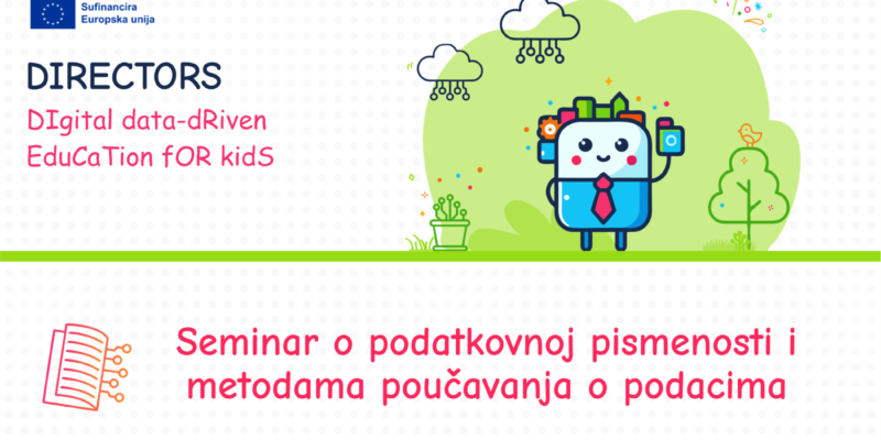 U srijedu, 14. svibnja 2025. godine, u sklopu Erasmus+ projekta DIRECTORS održan je Seminar o podatkovnoj pismenosti i metodama poučavanja o podacima, posebno namijenjen učiteljima/nastavnicima informatike i razredne nastave. Na seminaru su predstavljeni otvoreni, prilagodljivi i pristupačni obrazovni sadržaji za poučavanje podatkovne pismenosti, posebno prilagođeni učenicima nižih razreda osnovne škole. Sadržaji su razvijeni i eksperimentalno izvedeni u nekoliko hrvatskih i nizozemskih škola, u sklopu projekta Erasmus+ DIRECTORS – Digital Data-driven Education for Kids.