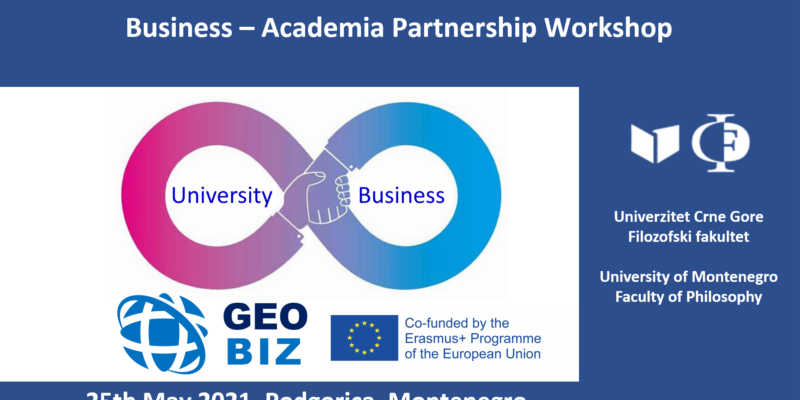 U okviru Erasmus+ CBHE projekta “[geobiz.eu/]Business driven problem-based learning for academic excellence in geoinformatics – GEOBIZ” koordinator kojeg je Geodetski fakultet, održava se [geobiz.eu/news13-2/]Radionica o suradnji poslovnog i akademskog sektora (Business-Academia Cooperation Workshop) u poticanju primjene naprednih tehnologija u području geoinformatike u akademskom obrazovanju i poslovnom sektoru.