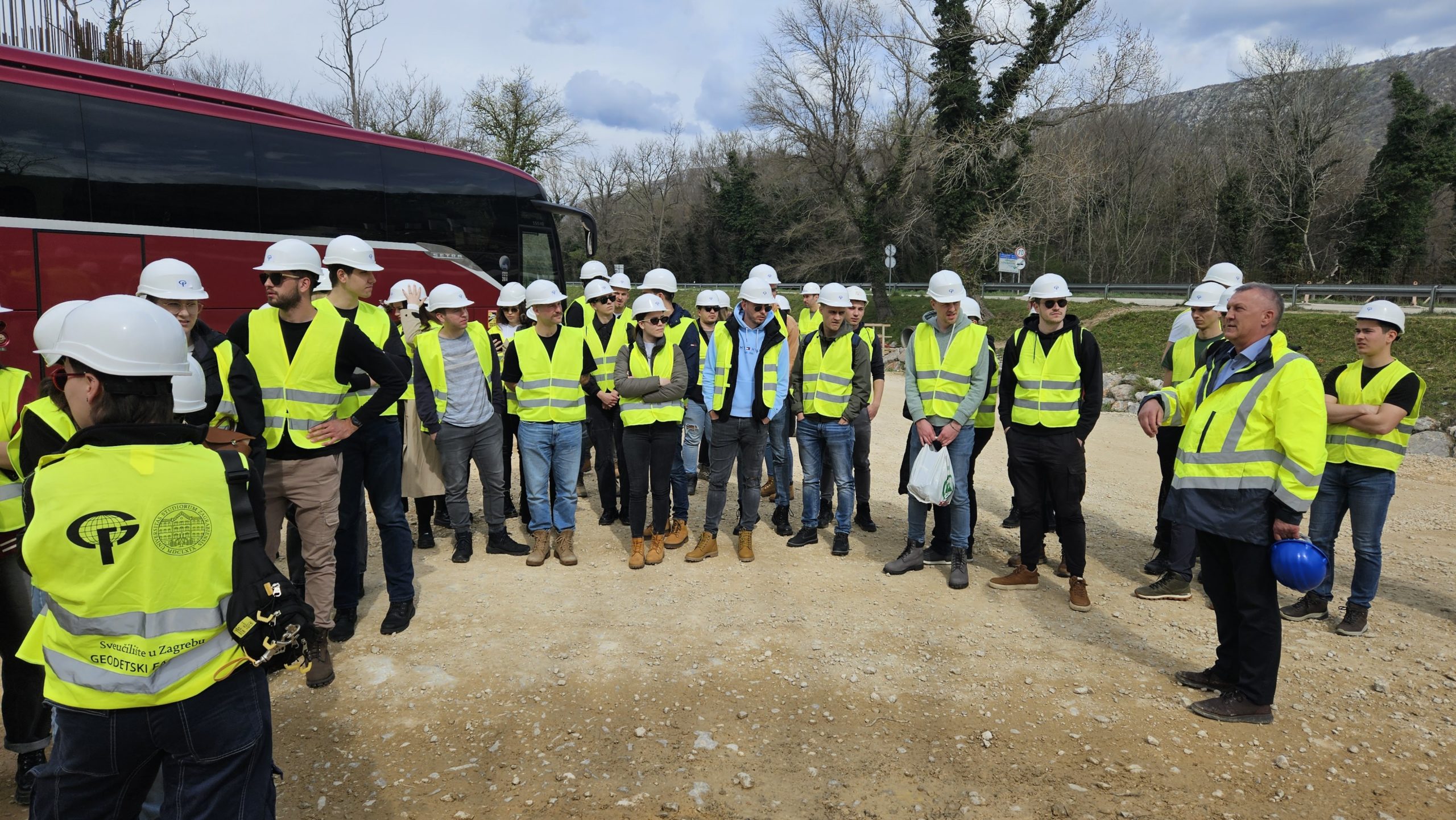 Dana 25. ožujka 2025. Centar za razvoj karijera studenata Geodetskog fakulteta organizirao je posjet gradilištu obilaznice Novog Vinodolskog. Navedena dionica dio je sektora Križišće – Žuta Lokva, neizgrađenog dijela autoceste A7 Rupa-Rijeka-Žuta Lokva i predstavlja 1. fazu izgradnje buduće autoceste. Duljina obilaznice je 9,8 km, od čega 6,5 km na trasi buduće autoceste te 3,3 km spojnih cesta na državnu cestu D8. Sama trasa koridora autoceste uvjetovana je izuzetno zahtjevnim reljefom te će u budućnosti biti izgrađen veliki broj cestovnih objekata. Tako se u sklopu predmetne obilaznice nalazi cestovni tunel Zagori duljine 834 m i vijadukt Ričina duljine 1057 m. Geodetski radovi koji se odvijaju na toj dionici predstavljaju zahtjevne radove iz područja inženjerske geodezije za čiju realizaciju je potrebno veliko znanje i iskustvo geodetskog inženjera, a što je predstavljalo idealnu priliku za stjecanje dodatnih znanja studentima Geodetskog fakulteta. Na stručnoj ekskurziji u najvećem broju sudjelovali su studenti I. godine diplomskog studija geodezije i geoinformatike, te studenti prijediplomskog studija geodezije i geoinformatike kao i nastavnici i suradnici Geodetskog fakulteta Sveučilišta u Zagrebu.