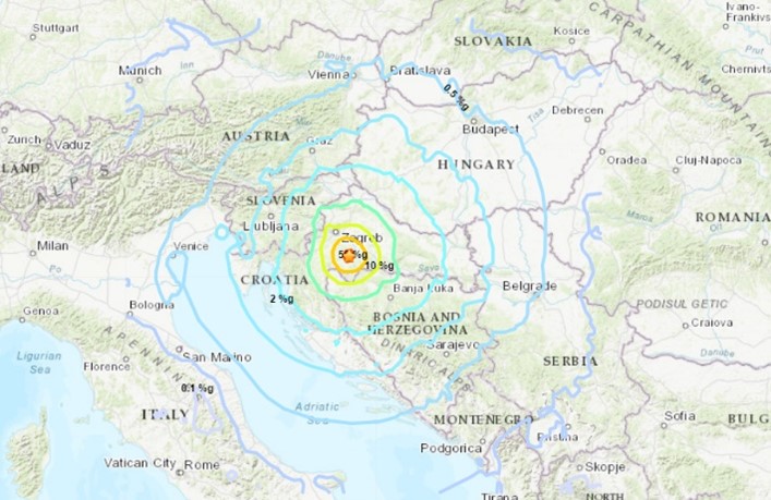 U ponedjeljak, 28. prosinca 2020. godine potres magnitude 5,0 prema Richteru s epicentrom nedaleko Petrinje snažno je zatresao područje središnje Hrvatske, a osjetio se i u susjednim državama. Isto jutro na istom epicentralnom području uslijedila su još dva jača potresa, prvi magnitude 4,7 prema Richteru, a drugi magnitude 4,1 prema Richteru. U narednih 24 sata na istom epicentralnom području dogodilo se još desetak slabijih potresa. Međutim, ispostavilo se je da su svi navedeni potresi bili samo niz predudara prije glavnog potresa koji se dogodio dan kasnije, 29. prosinca 2020. u 12:19. Epicentar ovog razornog potresa magnitude 6,2 prema Richteru bio je 5 km jugozapadno od Petrinje sa žarištem na dubini od 11 km. Potres se snažno osjetio u Hrvatskoj i susjednim državama, ali i u dijelovima udaljenijih država kao što su Njemačka, Austrija, Češka, Slovačka, Rumunjska, Kosovo, Crna Gora i Italija (slika 1). Na veliku žalost, živote je izgubilo najmanje sedam osoba. Materijalna šteta u epicentralnom području je velika, naročito u starim jezgrama Siska, Petrinje i Gline kao i u okolnim selima. Ovdje treba naglasiti da je potres u Petrinji je 30 puta jači od Zagrebačkog potresa.