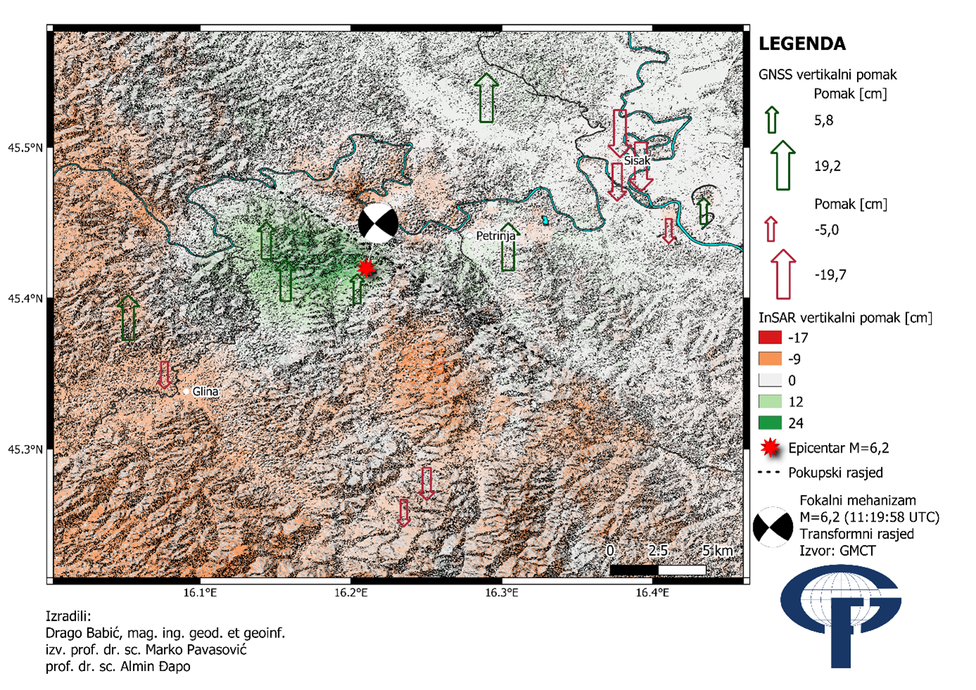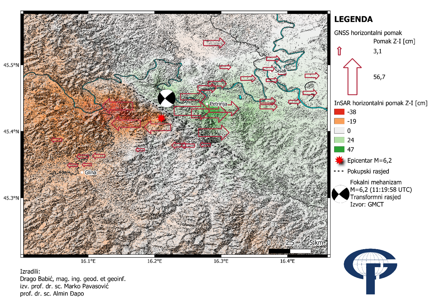 Preliminarni rezultati istraživanja koje je proveo Geodetski fakultet (slike 2 – 6) ukazuju da je Petrinjski potres uzrokovao izuzetno velike pomake tla na području Petrinje, Gline, Siska kao i puno šireg područja koje uključuje Sisačko-moslavačku, Karlovačku, Krapinsko-zagorsku županiju te posebno područje Grada Zagreba gdje je prouzročio velike progresivne štete na objektima koji su već bili oštećeni u Zagrebačkom potresu 22. ožujka 2020.