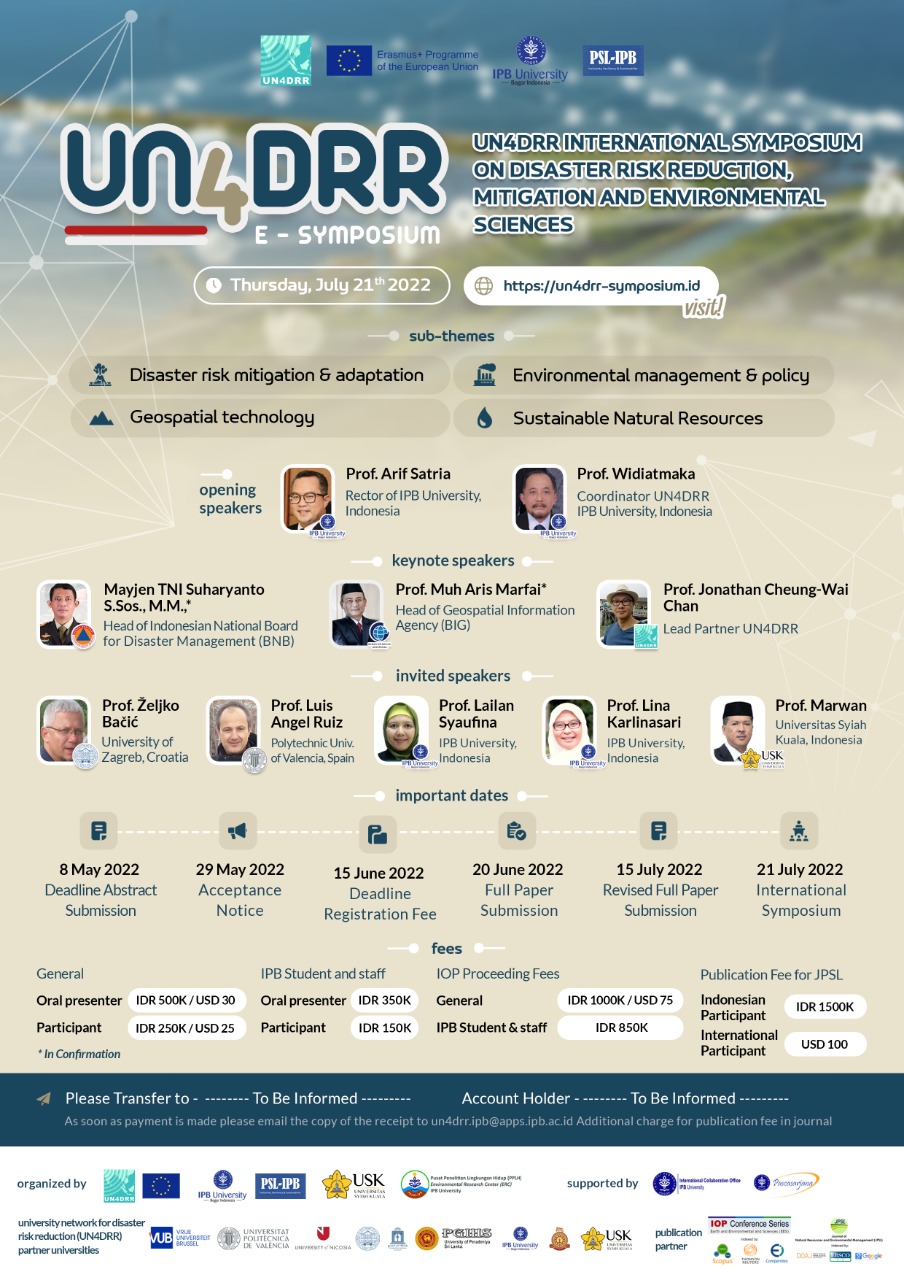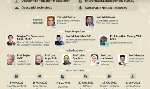 U okviru UN4DRR projekta IPB University organizira 21. srpnja u Bogoru, Indonezija “UN4DRR International Symposium on Disaster Risk Reduction, Mitigation and Environmental Sciences” na kojem sudjeluju i djelatnici Geodetskog fakulteta. Više o simpoziju možete pronaći ovdje.